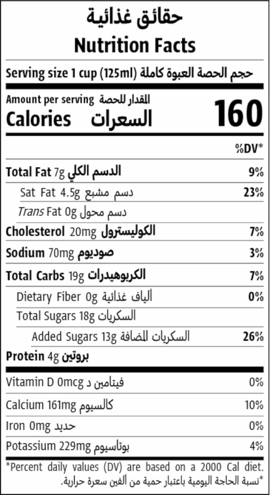 زبادي* ٦٢٪، عسل* ١٣٪، مسحوق حليب خالي الدسم*، ماء، كريمة* ٥٪، سكر قصب*، صمغ الخروب*، صمغ الغوار*. *عضوي موثق.