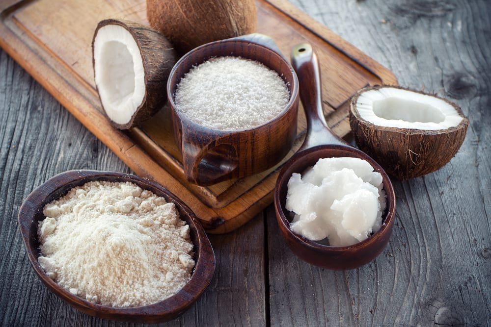 تظل المعجنات والمخبوزات الأخرى رطبة وتحتفظ بنكهة لطيفة بإستخدام دقيق عضوي بجوز الهند، كل ذلك دون أن تغمرها نكهة جوز الهند. في حين أن كل هذه الطحين هي خيارات جيدة للخبز الخالي من الغلوتين ، وجدت دراسة من عام 2020 أن استخدام مزيج من جوز الهند ودقيق اللوز في الكعك الخالي من الغلوتين والصديق للكيتو أسفر عن فطائر مافن أكثر نعومة ونكهة ورطوبة من تلك التي تستخدم فقط دقيق جوز الهند , ثم يتم كشط لب جوز الهند ، وشطفه ، وبشره ، ويتم التصفية لفصل المواد الصلبة عن الحليب. نقوم بكشط اللحم من داخل جوز الهند بالكامل ، مبشور ، ومصفى لفصل المواد الصلبة عن حليب جوز الهند.